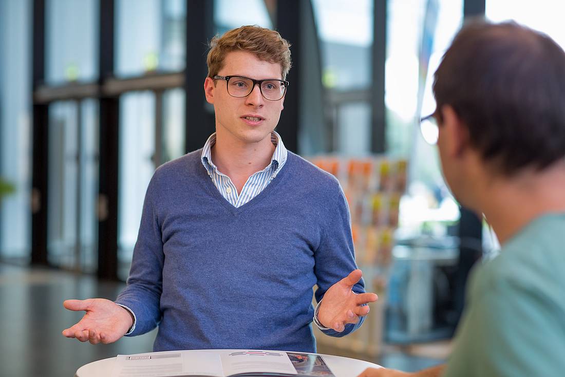 Die Drucker, die wir am Studiengang HTM benutzen, arbeiten nach dem sogenannten FDM-Prinzip. FDM steht für Fused Deposition Modeling, auf Deutsch Schmelzschichtung. Zuerst wird mit dem Computer ein Entwurf designt. Danach kommt der Drucker ins Spiel. Ein geschmolzener Kunststoffdraht wird von einem Fördergerät, dem Extruder, unter hohem Druck gleichmäßig aus einer beweglichen Düse auf eine Bauplattform gepresst – ähnlich wie beim Kuchen verzieren. Die Bauplattform wandert während des Druckens nach unten, während die Düse Schicht für Schicht aufträgt und das gewünschte Werkstück in die Höhe wächst.