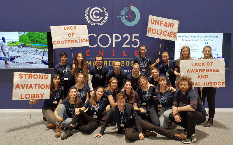 Bei der Konferenz in Madrid, die von 2. bis 13. Dezember stattfand, setzte sich das Team für fairen und nachhaltigen Transport ein und zeigte die Probleme, die der Flugverkehr erzeugt, auf. Diese Probleme werden immer größer: Mehr als 5 % der globalen Erwärmung sind auf den Flugverkehr zurückzuführen und die Anzahl der Flugpassagiere soll sich in den nächsten 20 Jahren sogar verdoppeln.