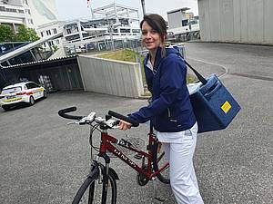 Die Studierende Maria Bemelmans beim Abholen der ersten Studienproben.