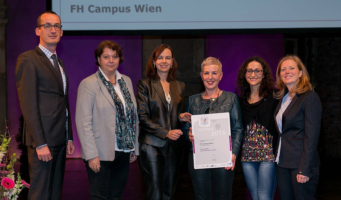 Die FH Campus Wien erhielt von Sophie Karmasin das Grundzertifikat „Audit Hochschule und Familie“. Die Ministerin zeichnete ArbeitgeberInnen, Hochschulen sowie Gesundheits- und Pflegeeinrichtungen aus ganz Österreich aus.