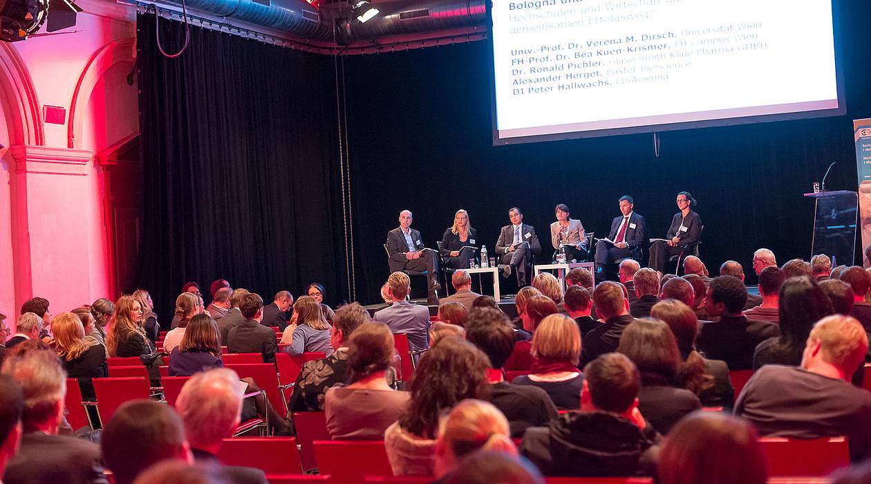 Hochranginge VertreterInnen der Universität Wien, der FH Campus Wien, von Baxter BioScience, Glaxo Smith Kline Pharma GMBH und LISAvienna diskutierten im Rahmen einer feierlichen Abendveranstaltungen über "Bologna und Business in den Life Sciences – Hochschulen und Wirtschaft auf gemeinsamem Erfolgsweg". Eine breit erörterte Frage lautete: "Warum schließen 80% der BachelorabsolventInnen ein Masterstudium an und nur 20% gehen unmittelbar in Industrie und Forschung?" FH-Prof. Dr. Bea Kuen-Krismer, Studiengangs- und Departmentleiterin Applied Life Sciences an der FH Campus Wien, sah Gründe dafür darin, dass im Bachelorstudium ein intensives Interesse an der Materie geweckt werde. Zum anderen fehlen ihnen aber häufig Informationen, welche Einsatzmöglichkeiten sie mit ihrem Bachelorabschluss in Forschung und Industrie haben. "Die Berufsbilder der Bachelor sind noch nicht sehr bekannt. Hier sind die Unternehmen eingeladen, uns besser über diese Jobprofile zu informieren.", so Kuen-Krismer. Alexander Herget, Baxter BioScience und Dr. Ronald Pichler, Glaxo Smith Kline Pharma GMBH und als Vertreter des Forums der forschenden pharmazeutischen Industrie in Österreich (FOPI), bekräftigten im Zuge der Diskussion ihr Interesse an BachelorabsolventInnen und zeigten sich nachdrücklich bereit, diese Informationslücke zu schließen.