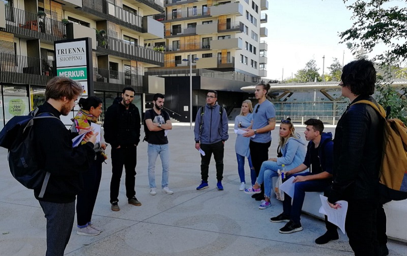 Zeitgenössische Landschaftsarchitektur versteht sich immer im Spannungsfeld ökologischer, funktionaler, technischer, sozialer und gestalterischer Fragen. Um ein gutes Gespür zu bekommen, wie Freiräume optimal gestaltet werden, besichtigten Studierenden des Masterstudiums Architektur – Green Building mit Landschaftsarchitektin und Lehrende der FH Campus Wien, Carla Lo, Best Practice-Beispiele direkt vor Ort. Bei der Diskussion ging es auch um die notwendige Berücksichtigung der stadtplanerischen Makroebene und der Objektplanung auf der Mikroebene. In der realen Umgebung wurde besonders auf Maßstäbe, Volumen und Abstände geachtet und Materialien und bauliche Qualitäten analysiert.