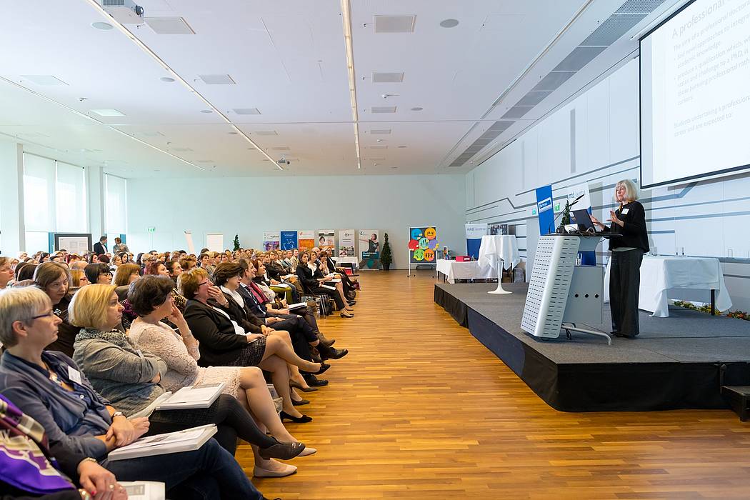 Hochkarätig ging es dann auch weiter durch die Veranstaltung. Prof.in Anne de Looy, Präsidentin des Europäischen Diaetologenverbands (EFAD), Mag. Andreas Neuhold, Bundesministerium für Wissenschaft und Forschung, Mag.a Regina Aistleithner, Gesundheit Österreich GmbH, Priv.-Doz.in Dr.in Tanja Stamm, PhD MSc MBA, MedUni Wien sowie Mag. Dr. Christoph Augner von den Salzburger Landeskliniken meldeten sich mit interessanten Vorträgen rund um das bisher Erreichte und die Weiterentwicklung der Ausbildungen und Berufe der medizinisch-technischen Dienste zu Wort. In den nachfolgenden Workshops erarbeitete das Plenum mit Unterstützung von ExpertInnen mit einschlägiger fachlicher Spezialisierung einen Forderungskatalog, welcher in Form einer Resolution Eingang in den berufspolitischen Diskurs finden soll.