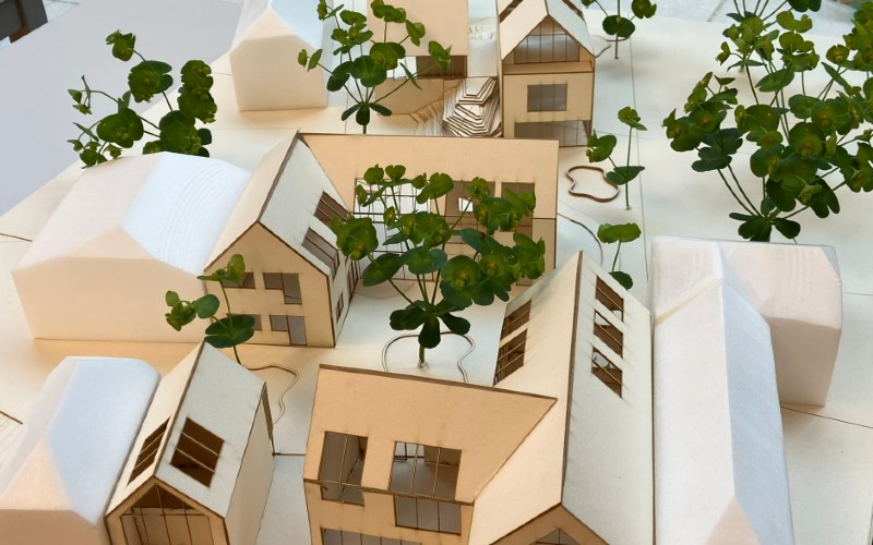 In Teams zu zweit entwickelten die Studierenden im letzten Semester ihres Bachelorstudiums Architektur – Green Building Wohnbaukonzepte für ein Grundstück im niederösterreichischen Alland.
