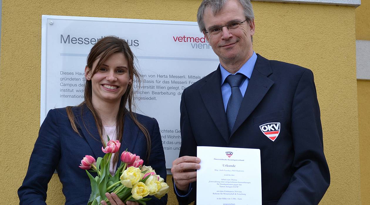 Judit Fazekas ist Absolventin der Molekularen Biotechnologie an der FH Campus Wien, Mitarbeiterin des Messerli Forschungsinstituts der Veterinärmedizinischen Universität Wien und PhD-Studentin an der Medizinischen Universität Wien. In ihrer Arbeit versucht die junge Wissenschaftlerin, Entwicklungen aus der Humanmedizin auf Tiere anwendbar zu machen. Für Krebsforschung an Hunden wurde sie nun mit dem Förderpreis des Österreichischen Kynologenverbandes in Kooperation mit „Rote Pfote – Krebsforschung für Tiere“ ausgezeichnet.