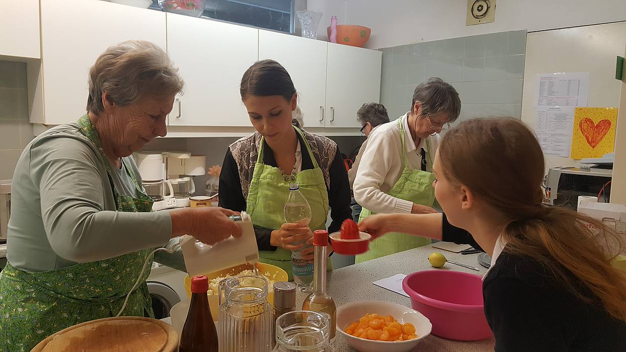 Beim Programmpunkt „Gusto Kochen“ gestalteten zwei Studierende der Diätologie, betreut von Sonja Visontai, einen Workshop mit, in dem gemeinsam eine besonders calciumreiche Nachspeise zubereitet wurde. Um das Thema der Calcium-Lieferanten noch zu vertiefen, konnten Interessierte einem Vortrag mit Schautafeln folgen.