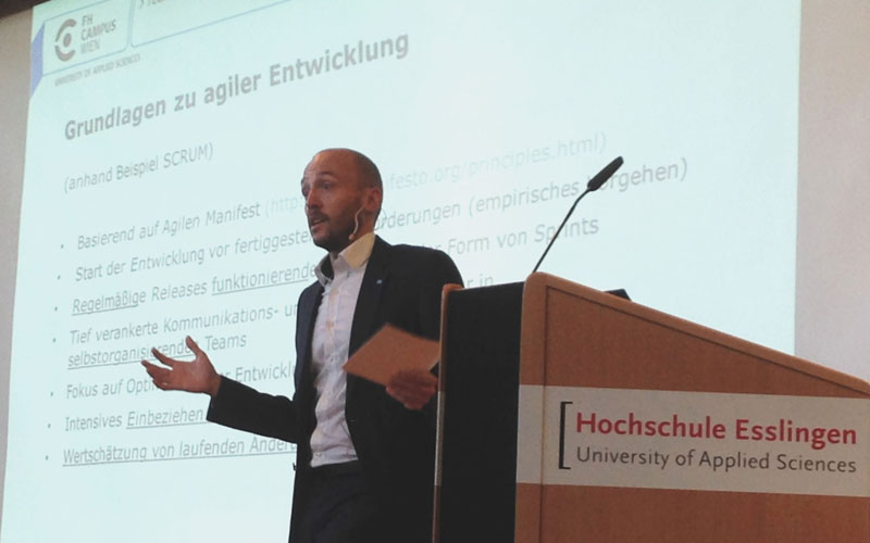 Philipp Rosenberger, Lehrender im Masterstudium Technisches Management, treibt das noch junge Themengebiet des hybriden IT-Projektmanagements international voran, zuletzt mit Vorträgen bei Tagungen an den Hochschulen Darmstadt und Esslingen.