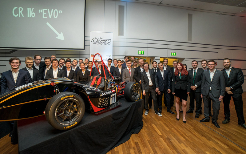 Am 2. Juni 2016 lud das Os.Car Racing Team der FH Campus Wien in den voll besetzten Festsaal der Fachhochschule und präsentierte seinen Neuzugang im Rennstall für die heurigen Formula Student Wettbewerbe: CR-116 EVO.