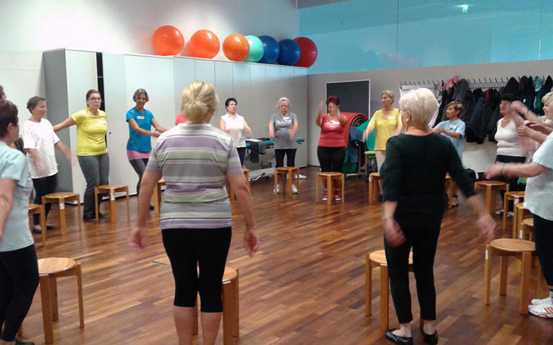Dieser Kurs wird in der städtischen Wohnhausanlage „Karl Wrba Hof“ montags Nachmittag abgehalten. Eingeladen sind Bewohnerinnen und Bewohner, die ihren Aktivitätslevel erhöhen möchten. Das physiotherapeutische Handeln konzentriert sich darauf, die grundlegenden motorischen Fähigkeiten Kraft, Beweglichkeit und Koordination zu verbessern. Zielgruppe dieses Kurses sind zudem auch Personen, die schlicht und einfach in Gesellschaft aktiv sein möchten. Intention ist es, diesen Menschen einen Ausgleich etwa zu häuslichen Betreuungsverpflichtungen anzubieten und ihnen freudvolle Zeit für sich selbst zu ermöglichen.