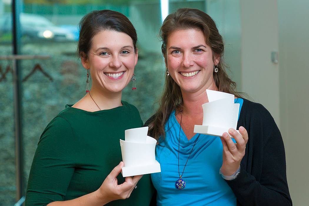 Die Gewinnerinnen des Teaching Award sind Sara Kaufmann und Bettina Krenosz vom Studiengang Logopädie-Phoniatrie-Audiologie. Durch ihr herausragendes Lehrkonzept schaffen sie eine Abfolge von komplexen Lernsituationen, in denen Theorie und Praxis in dauernder Wechselwirkung stehen. In ihrer Einführungsvorlesung „Atem, Stimme, Sprechen und Sprache: Erleben und Gestalten“ erwerben die Studierenden Grundlagen der Sprecherziehung und des ökonomischen Stimmgebrauchs. Das didaktische Vorgehen zielt darauf ab, die Theorie mit stimmtherapeutischen praktischen Übungen zu „stören“ und die Studierenden mit Assoziationskarten oder mittels „one-minute paper“ aufzufordern, theoretisch Erlerntes ad hoc mit eigenen Erfahrungen – beispielsweise Atemrhythmus in Ruhe und beim Sprechen – zu koppeln. Individuelle Sprechtechnikfehler werden durch Videobeispiele veranschaulicht. „Das Erkennen der eigenen Sprechtechnikfehler ist in der späteren Arbeit als Stimmtherapeutin/Stimmtherapeut vonnöten, um pathologische Muster besser identifizieren zu können. Durch jenen spielerischen Zugang sind Studierende also schon in der Studieneingangsphase mit diagnostischen Strategien und Fertigkeiten konfrontiert“, so der Kommentar der beiden Gewinnerinnen des Teaching Award.
