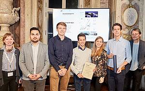 Über 3.000 Euro und Platz 2 freute sich das Team Group6Consulting, bestehend aus Sebastian Inger, Thomas Kostial, Patrick Mortsch, Stefan Weninger und Markus Widler. Ein Anerkennungspreis ging an das Team Building Bridges mit Alexander Artner, Florian Messmer, Markus Oswald, Tayyib Tetik, Stefan Urban und Sophie Wistawel.