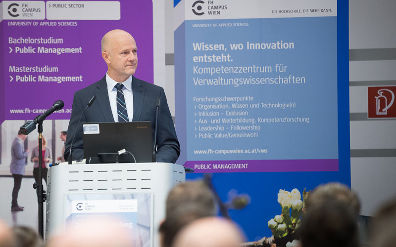 Für neue Wege des Wissensmanagements, der Partizipation, der gesellschaftlichen Inklusion und der verstärkten Orientierung am Gemeinwohl brauchen die staatliche Verwaltung und die öffentliche Wirtschaft mehr denn je Forschung. „Das Kompetenzzentrum für Verwaltungswissenschaften der FH Campus Wien positioniert sich als Innovationstreiber in diesem Umfeld“, mit dieser Ansage begrüßte Alfred Hödl, die Gäste bei der Eröffnungsfeier.