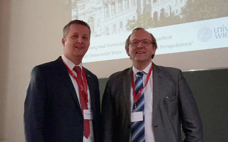 Am 23. und 24. November 2015 fand die 25. OeAD Hochschultagung im großen Festsaal der Universität Wien statt. Vizerektor DI Dr. mont. Heimo Sandtner präsentierte die F&E Strategie im Konnex von drei internationalen Projekten der FH Campus Wien.