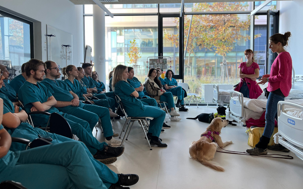 Der Studiengang Gesundheits- und Krankenpflege ermöglichte erstmals Studierenden im ersten Semester den Skills- und Kompetenzaufbau für eine besondere Situation – für die Begegnung mit Assistenzhunden im Pflegesetting.